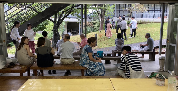 つなねの集会所は、建具を全開にすると中庭と一体化し、まるで屋外にいるような気分になれます(コロナ対策でもある)。その日は天気も良く、まさに絶好のバル日和でした。やっぱり昼のビールは最高ですね。